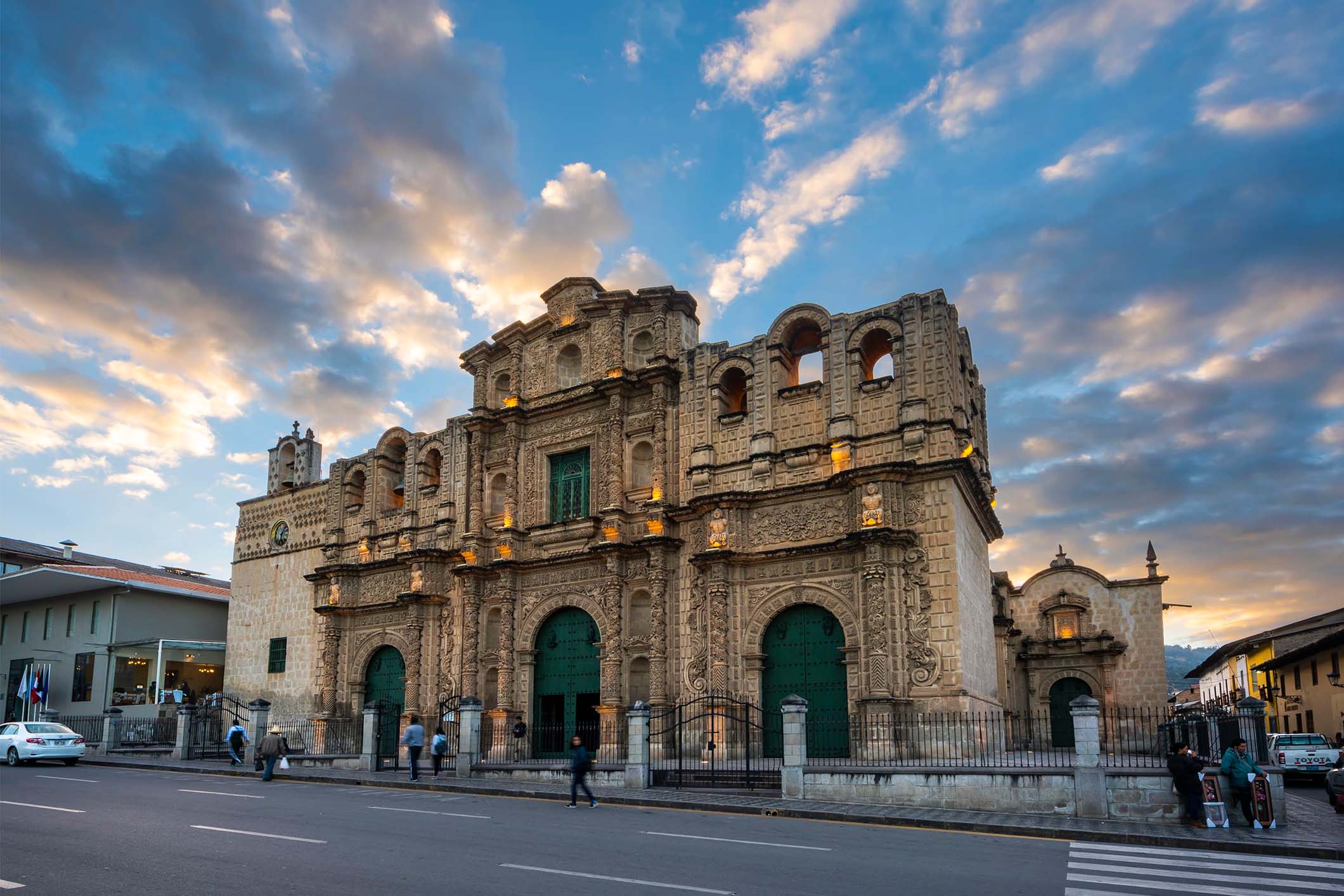 Plaza de armas, Iglesia San Francisco y la Catedral, que se caracteriza por su impresionante fachada tallada en roca volcánica; Belén, antiguo hospital de la época colonial; el museo arqueológico, etnográfico y religioso. Visitaremos el cuarto del rescate del Inca Atahualpa, colina Santa Apolonia, esplendido mirador natural de donde se observa la ciudad y el valle de Cajamarca; el famoso santuario denominado “la silla del Inca” (recorrido peatonal). Finalizando el tour lo dejamos en la plaza de armas.